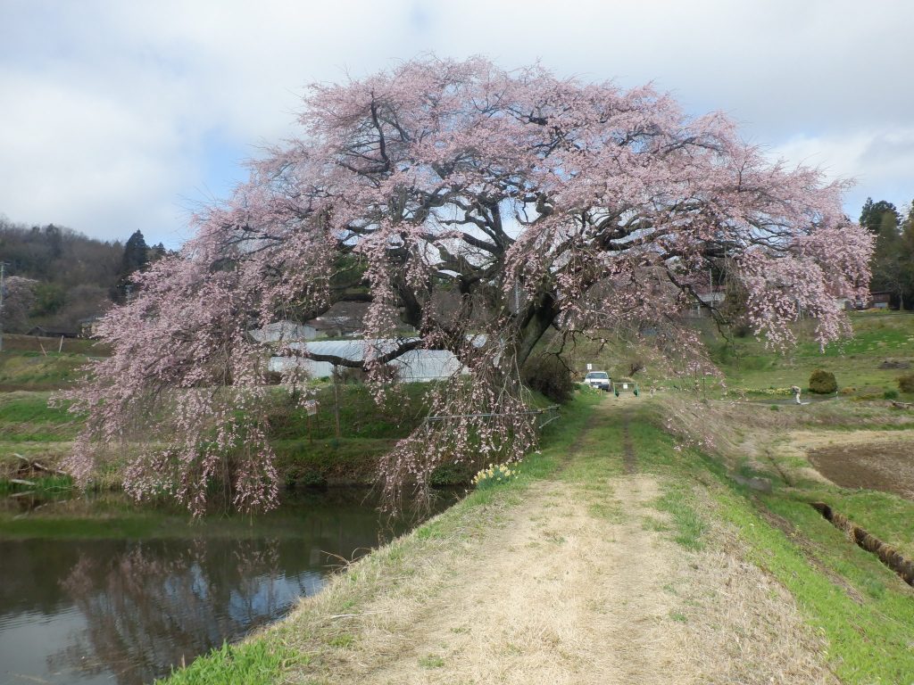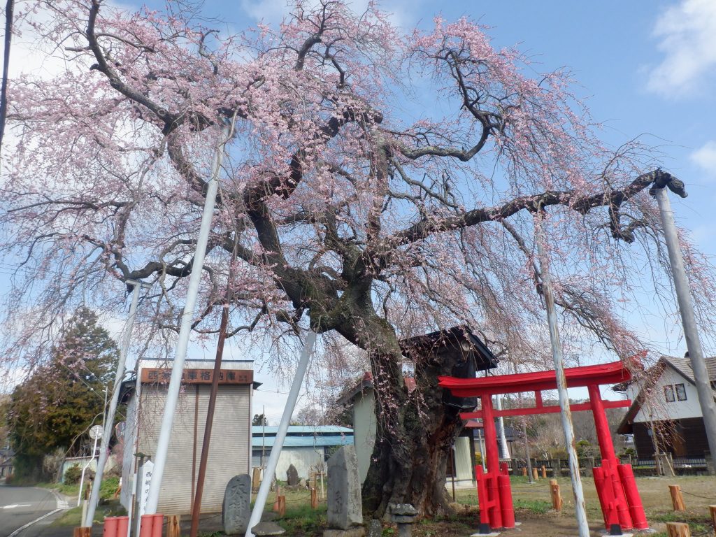 右輪台山のしだれ桜は今週末からが見頃の見込みです。